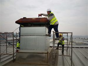 維修更換硬換路沿石 2.3、總裝焊裝風管風帽拆除與更換施工照片